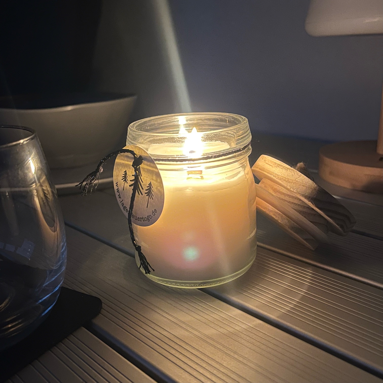 Dank des Holzdochtes erweckt diese besondere Kerze den Eindruck