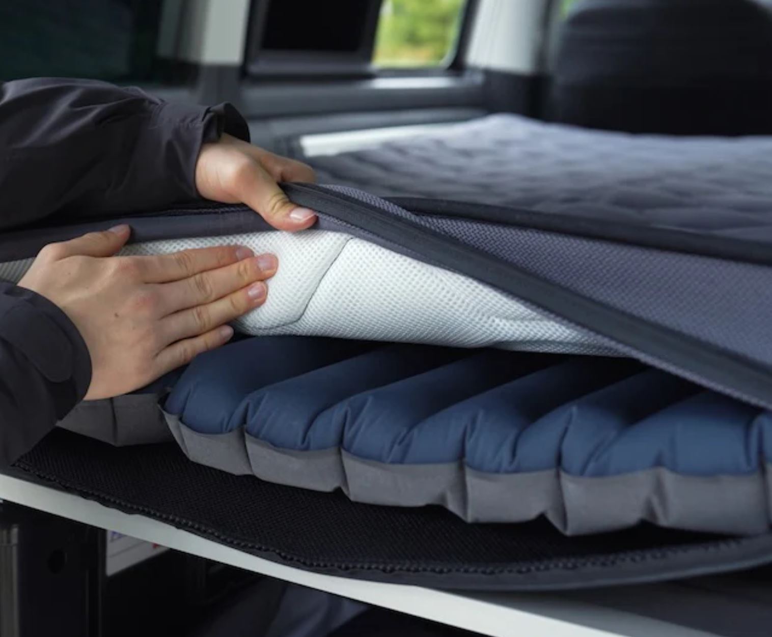 Premium Schlafkomfort mit Klimafunktion im CamperVan. Ultraleicht mit Super-Packmaß.