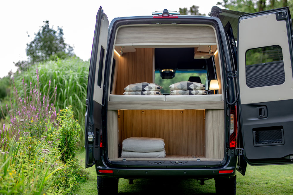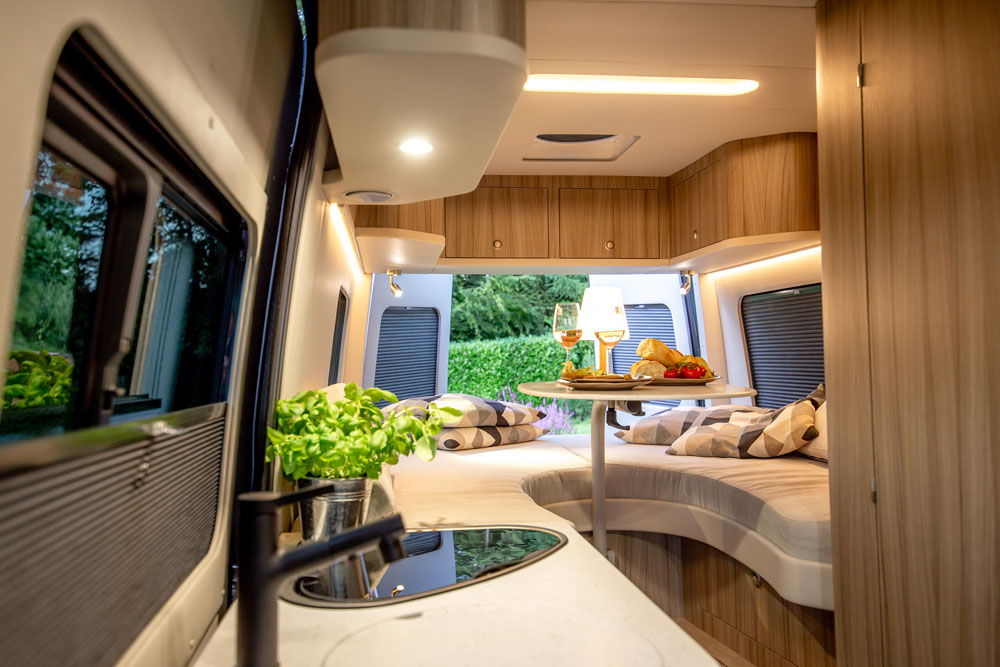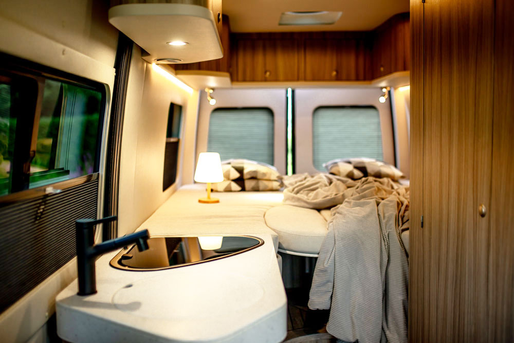 The Roadtrip is a Mercedes Sprinter van, 5.92 metres long, designed for two people and built to yacht quality by one of the leading yacht builders in the Netherlands. Innova now specialised in converting Mercedes-based campers using high-quality, proven, lightweight and robust materials from yacht building. As quality is our top priority, this was the decisive reason for us to include this vehicle in our sales range. A camper that brings a real yacht feeling to outdoor life. With high-quality materials, thoughtful details and clever features - the Roadtrip 595L is the ideal companion for two people. A mobile comfort zone: fully equipped bathroom, luxurious interior, high-end technology. For anyone who doesn't want to compromise on style, quality and freedom when enjoying the roadtrips.