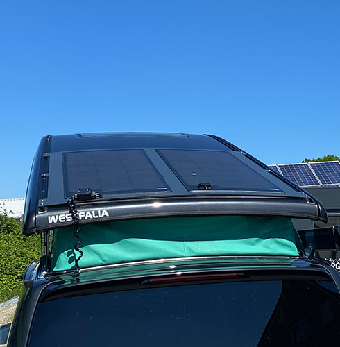 For a long time we were considering offering a solar system, because there are many on the market, but none convinced us so that we wanted to build it on our own vehicles. This for a very special reason, our vehicles are always driven only one season, and there the dismantling must be 100% possible. In addition, everyone is always concerned about the topic of "roof blowing", there are first cases where the manufacturer here no goodwill takes over when making changes to the roof. Translated with www.DeepL.com/Translator (free version)