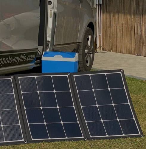 The name is the programme with this system! Everything happens quickly with the mobile solar system for the Marco Polo. Simply unfold it, connect it, and you're ready to start harvesting energy. You can set up the solar system outside your Marco Polo or place it behind the windscreen. A major benefit of our mobile system over DIY installations is that our solar system charges both batteries in your Marco Polo.