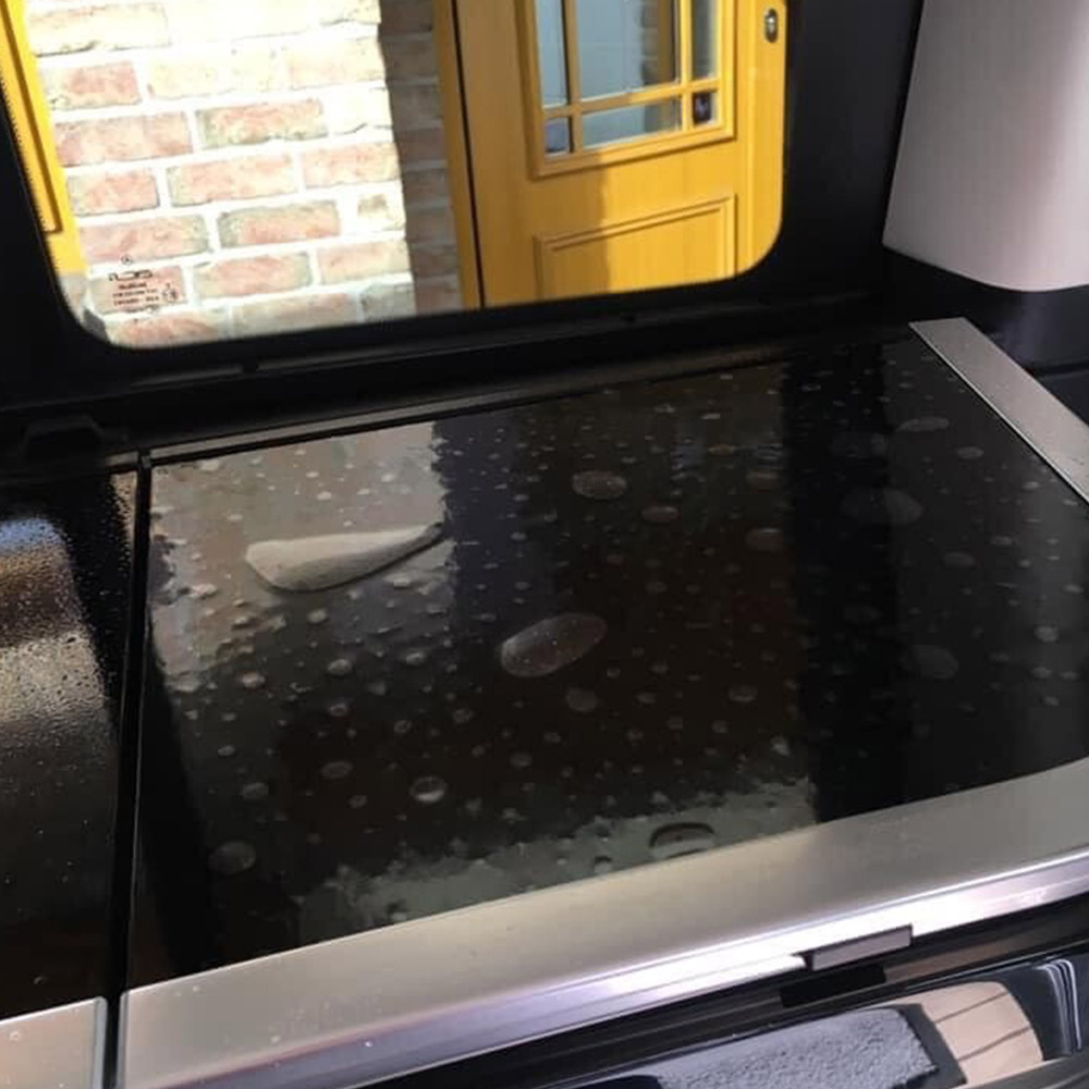 To prevent this, you can obtain two different protective film sets (3 individual films that are precisely tailored to the lid shapes) here. Installation is carried out using a wet adhesive method and is very easy to do (see pictures).