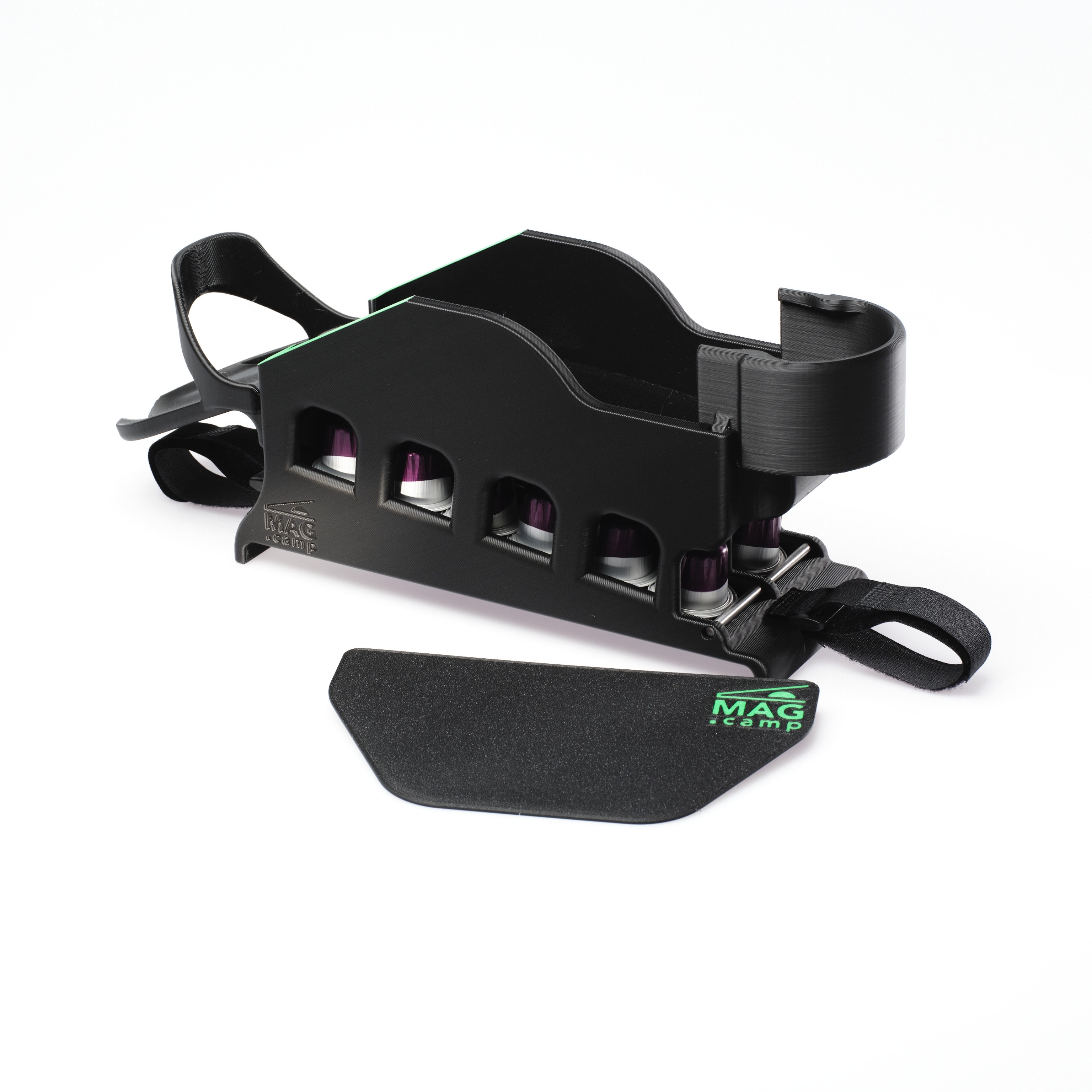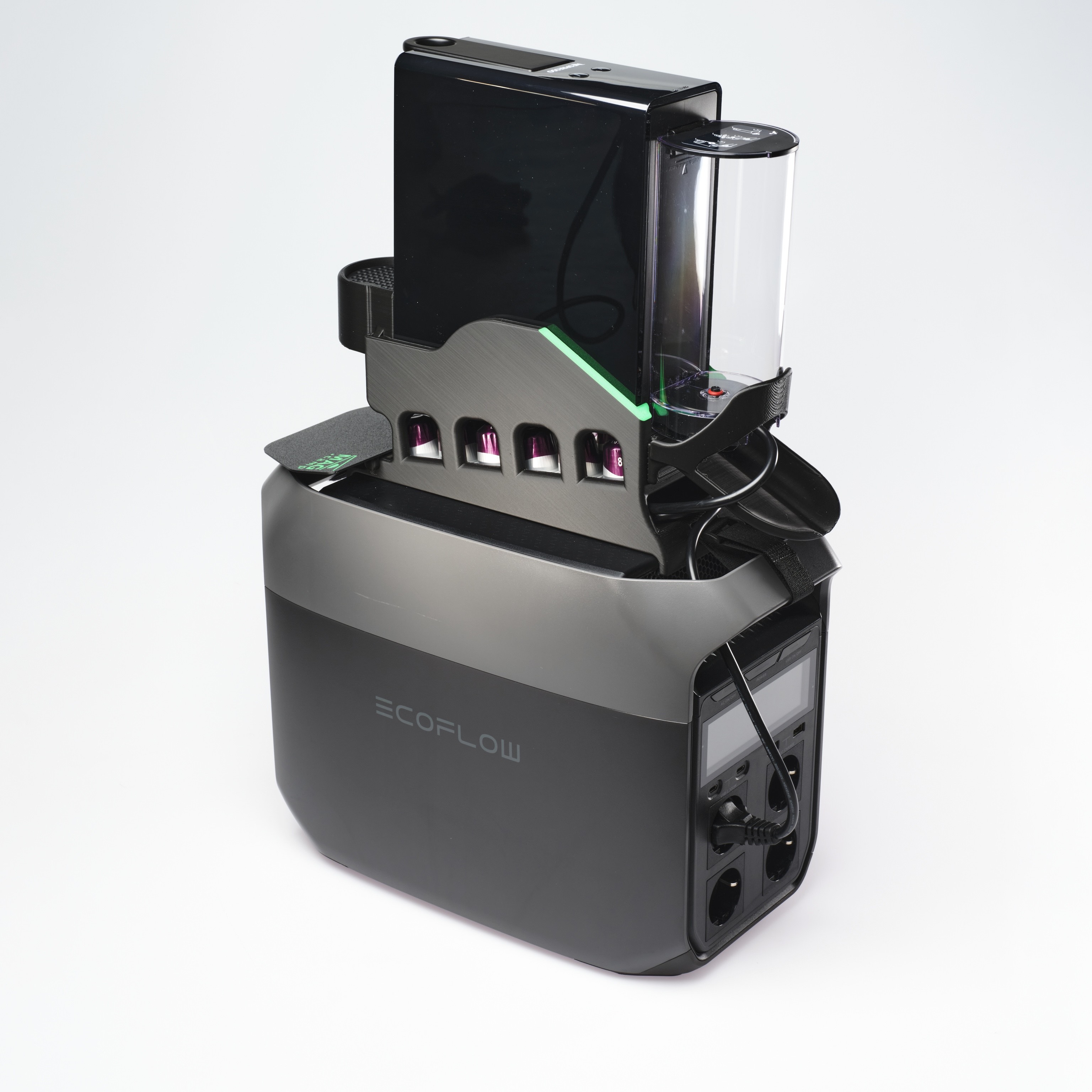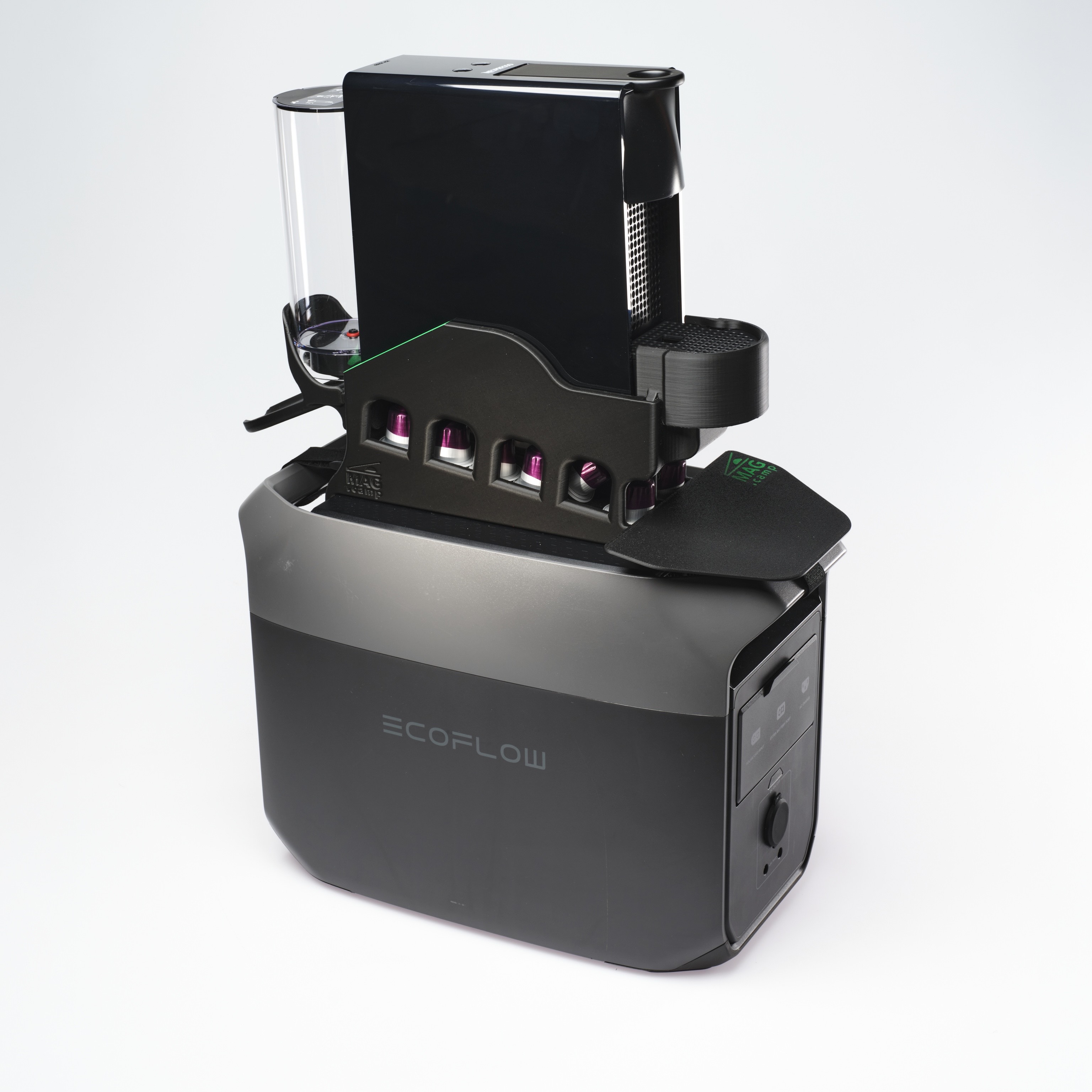 Der MAG.camp Kaffeemaschinenhalter bringt deine Maschine sicher, platzsparend und stylisch unter – auf der Powerstation oder jeder glatten Oberfläche.